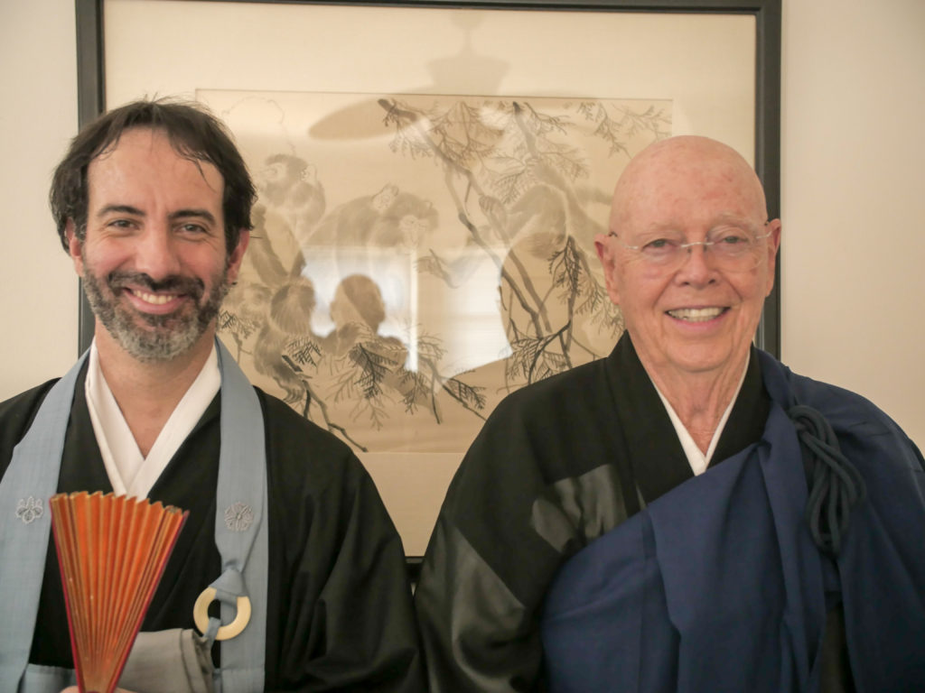 In a powerful conclusion to the 2018 Summer Ango training period, Head Trainee Rafael Doshin Carrasco presided over the traditional ceremonies of Shosan, or public dokusan, Tea Ceremony and Shuso Hossen, where he defended his presentation of the koan “The World-Honored One Ascends the Platform” in an intimate dharma talk and a deft exchange of dharma combat, followed by a heartfelt round of congratulatory poems from the sangha. Congratulations, Shuso!
